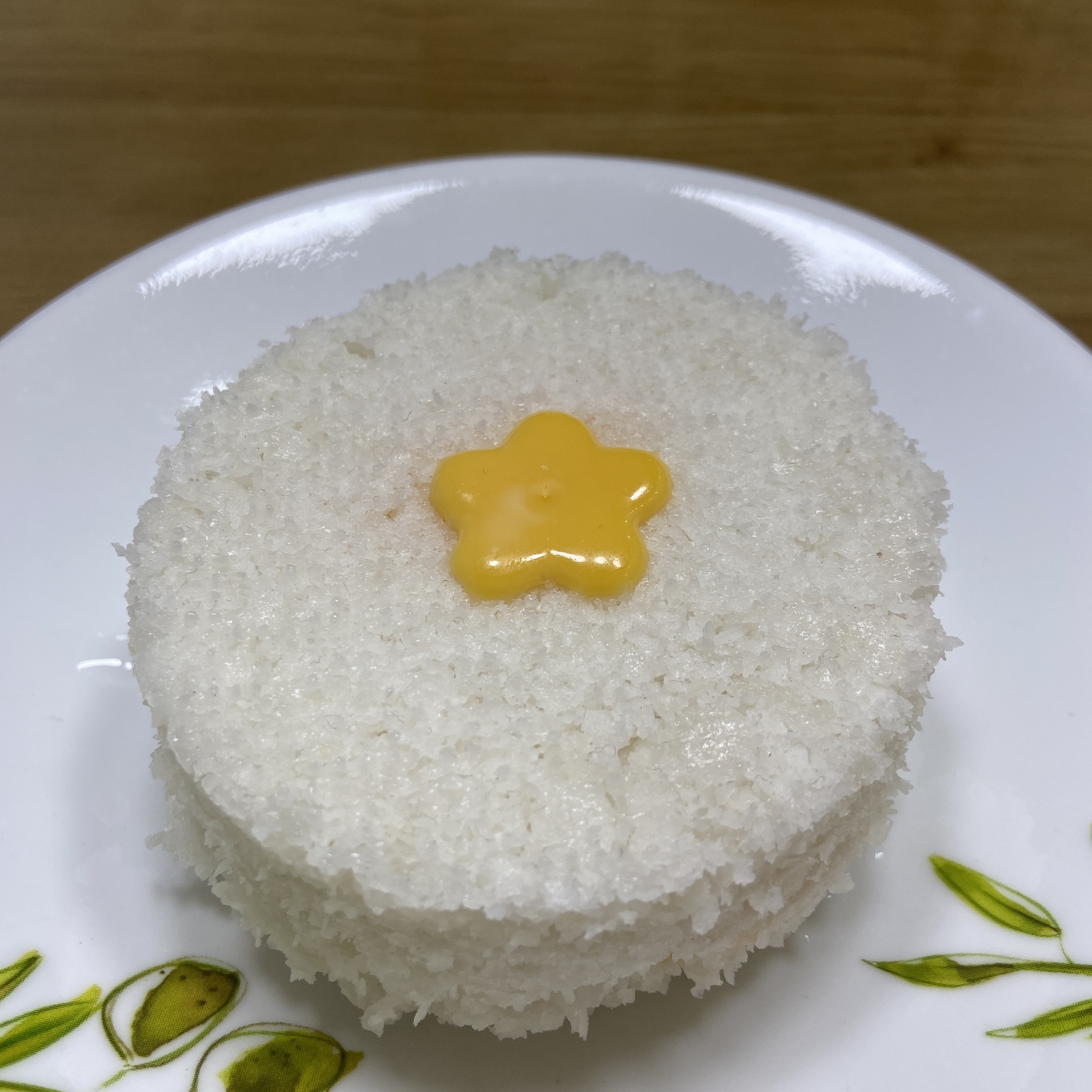 4. 완성된 치즈 설기에 맨처음 모양 낸 치즈를 올린다.